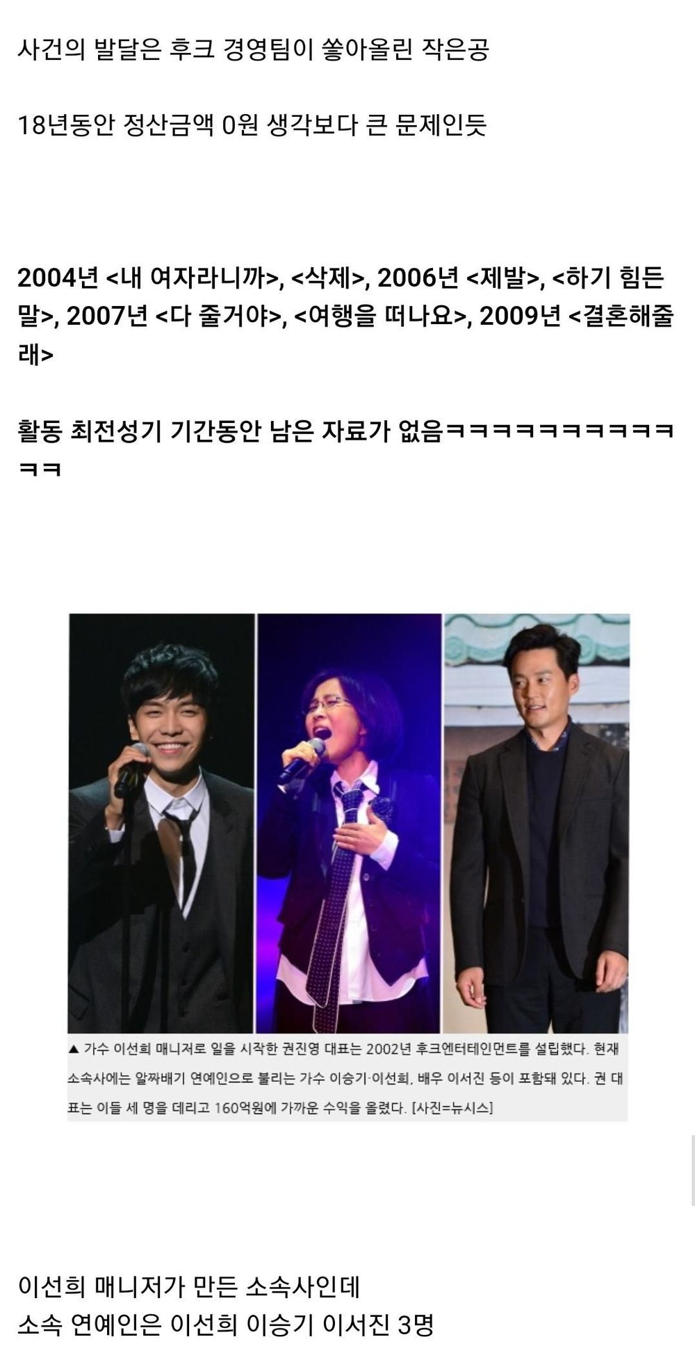 이선희도 몰랐나 정산0원 이승기 사태 둘러싼 궁금증 3가지 Ss연예프리즘